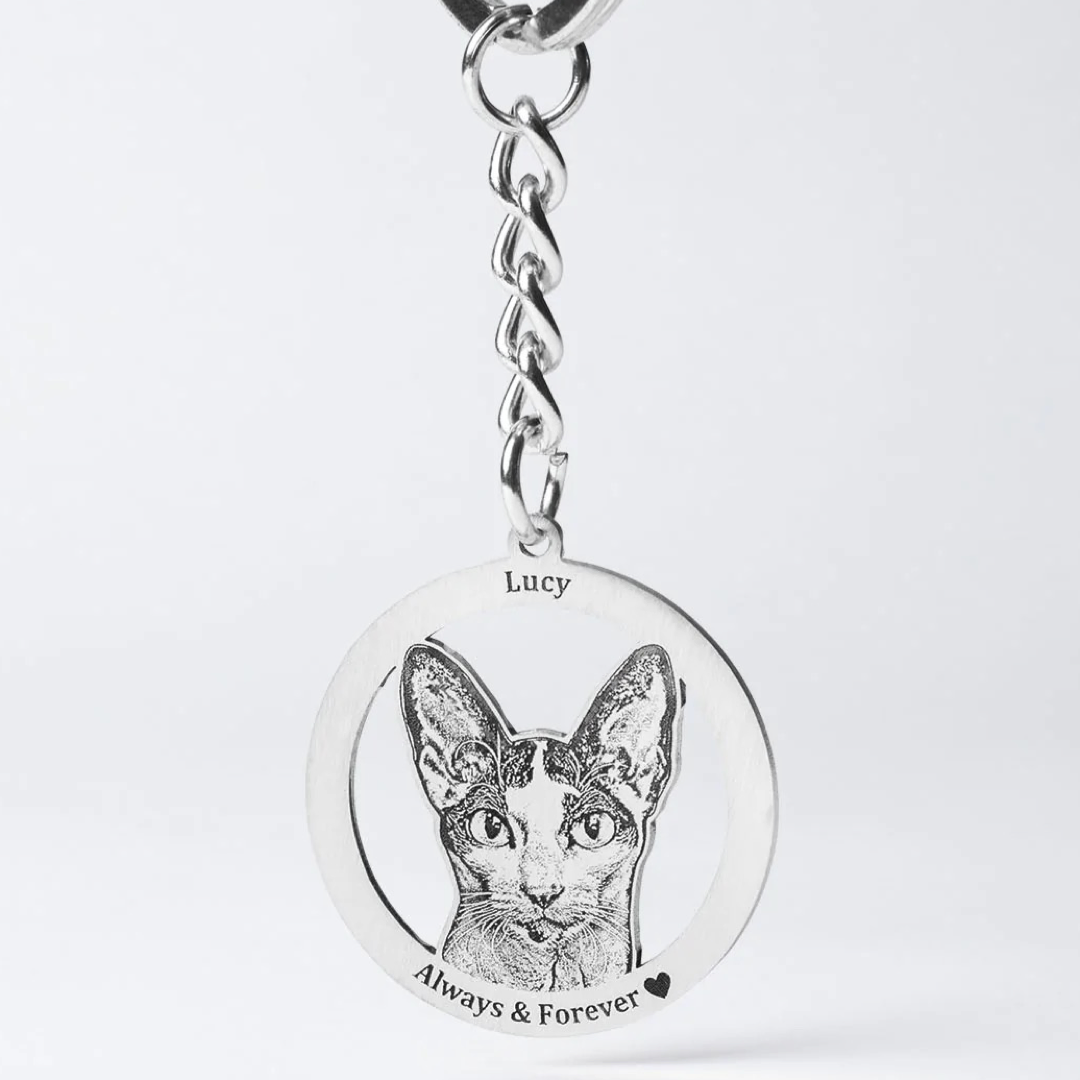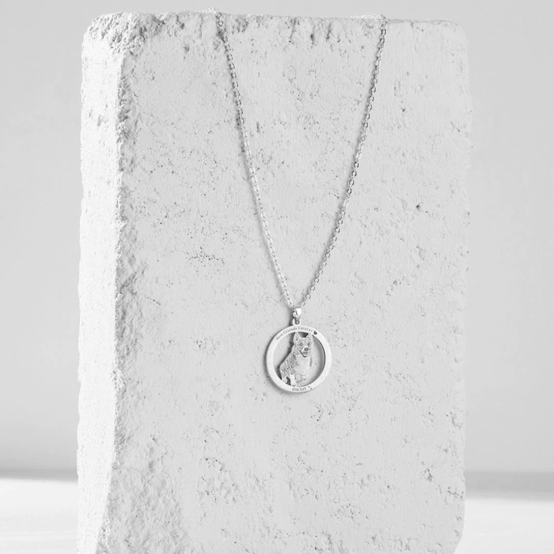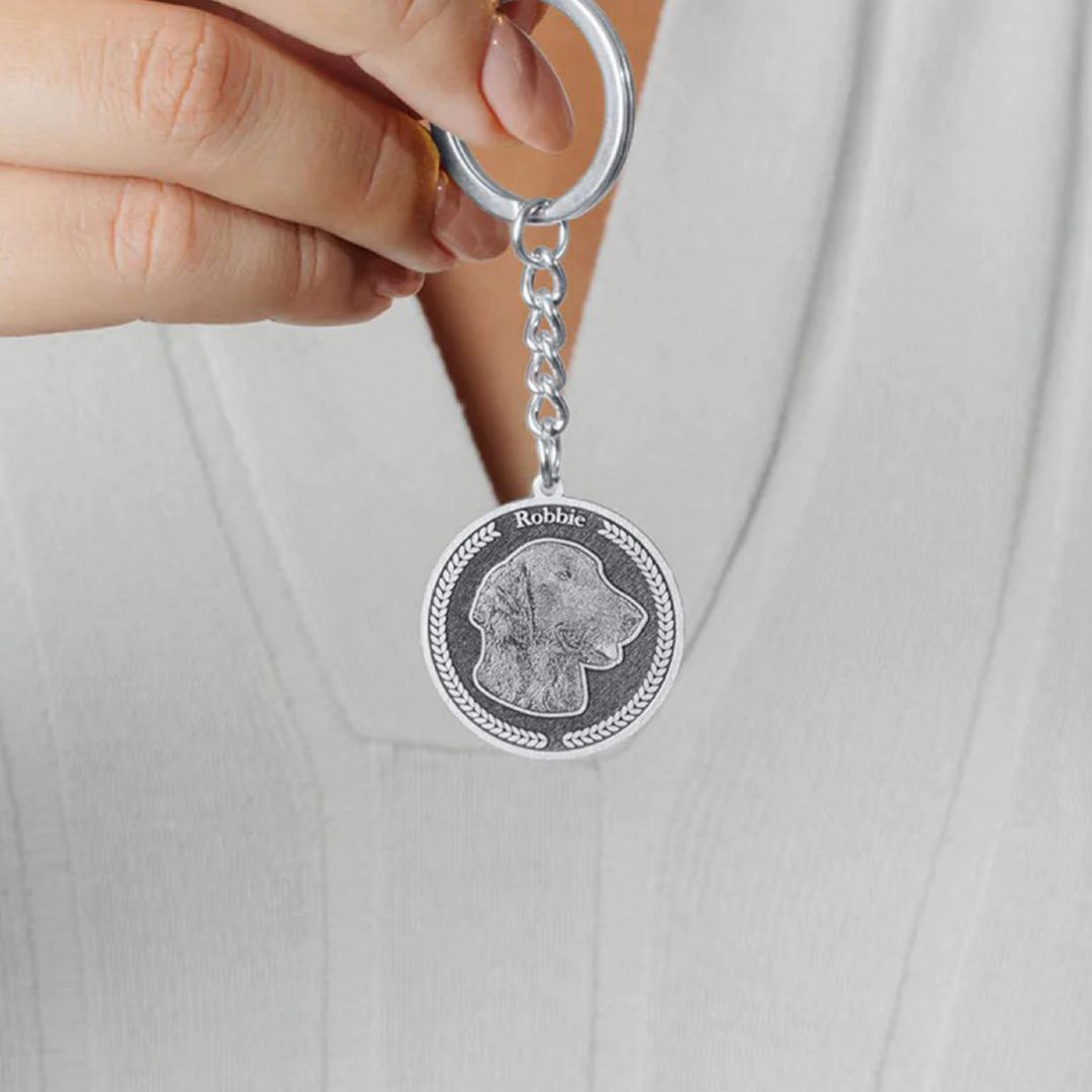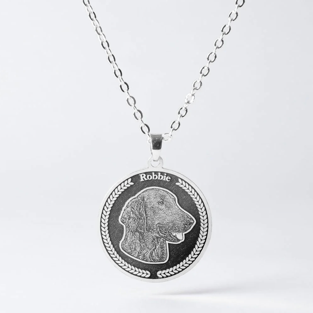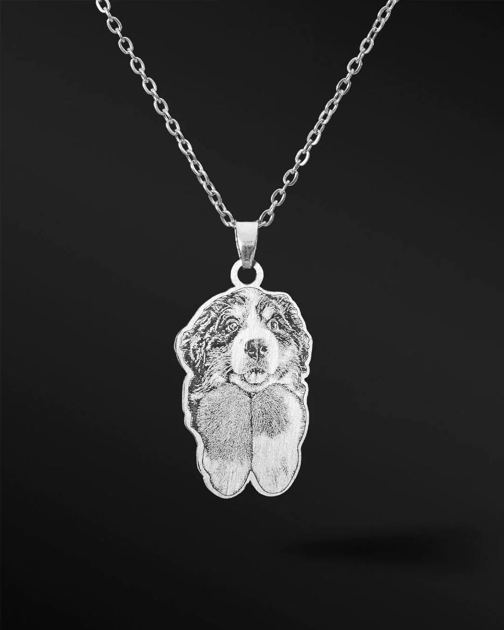Металева підвіска, вирізана лазером по контуру вашої тваринки та гравіруванням.