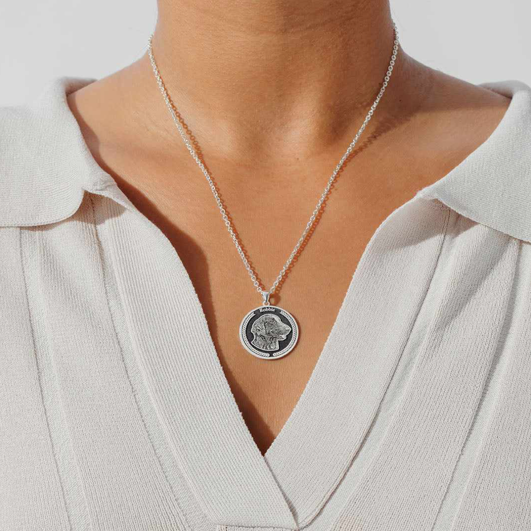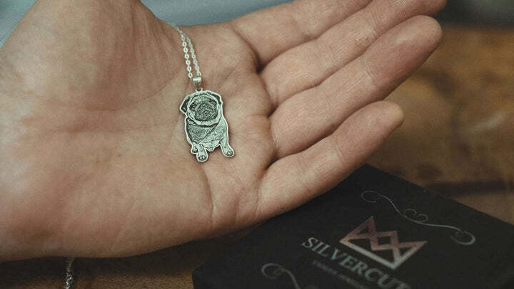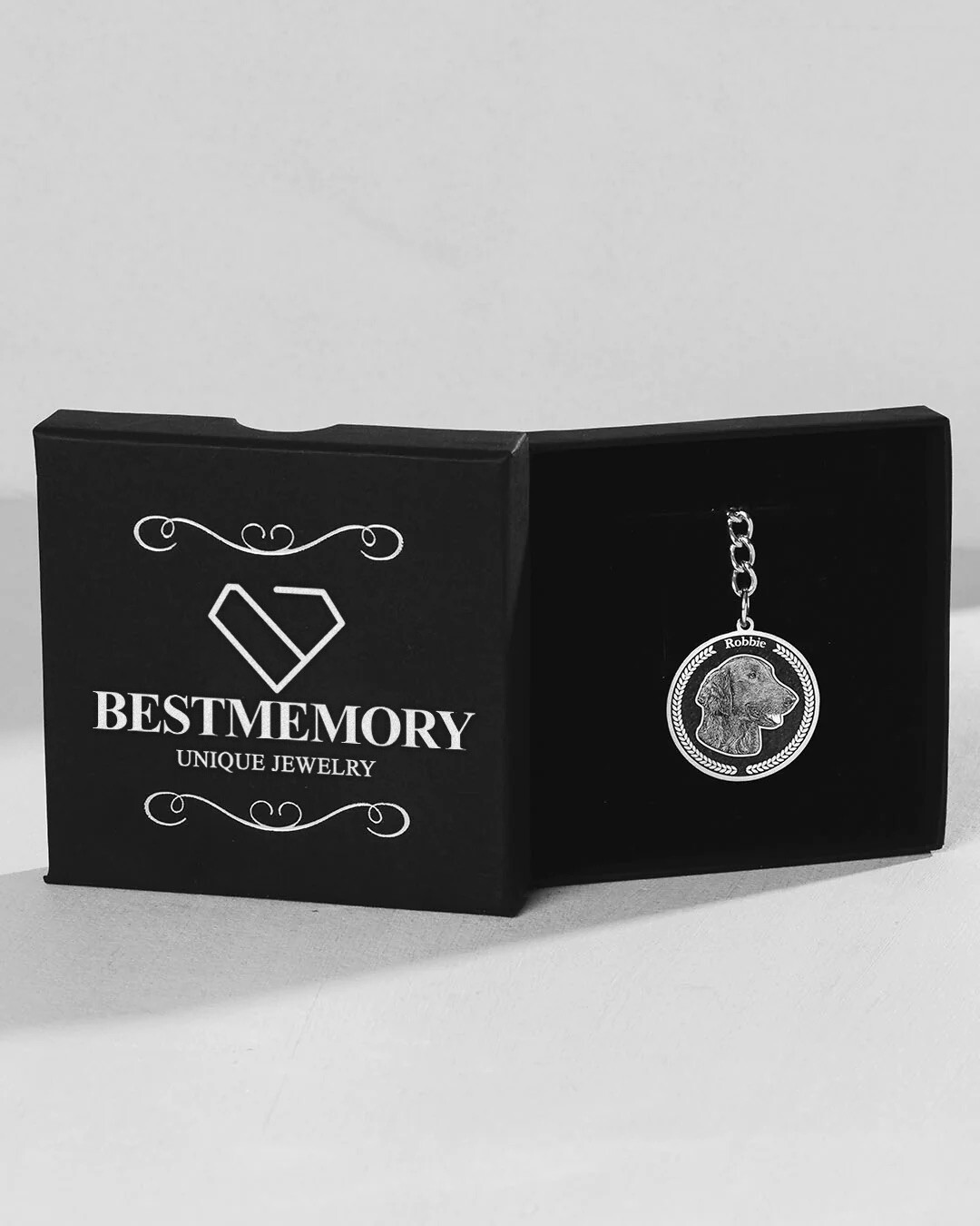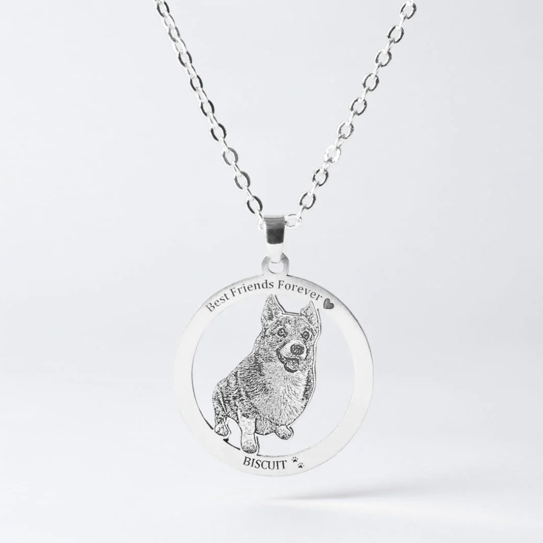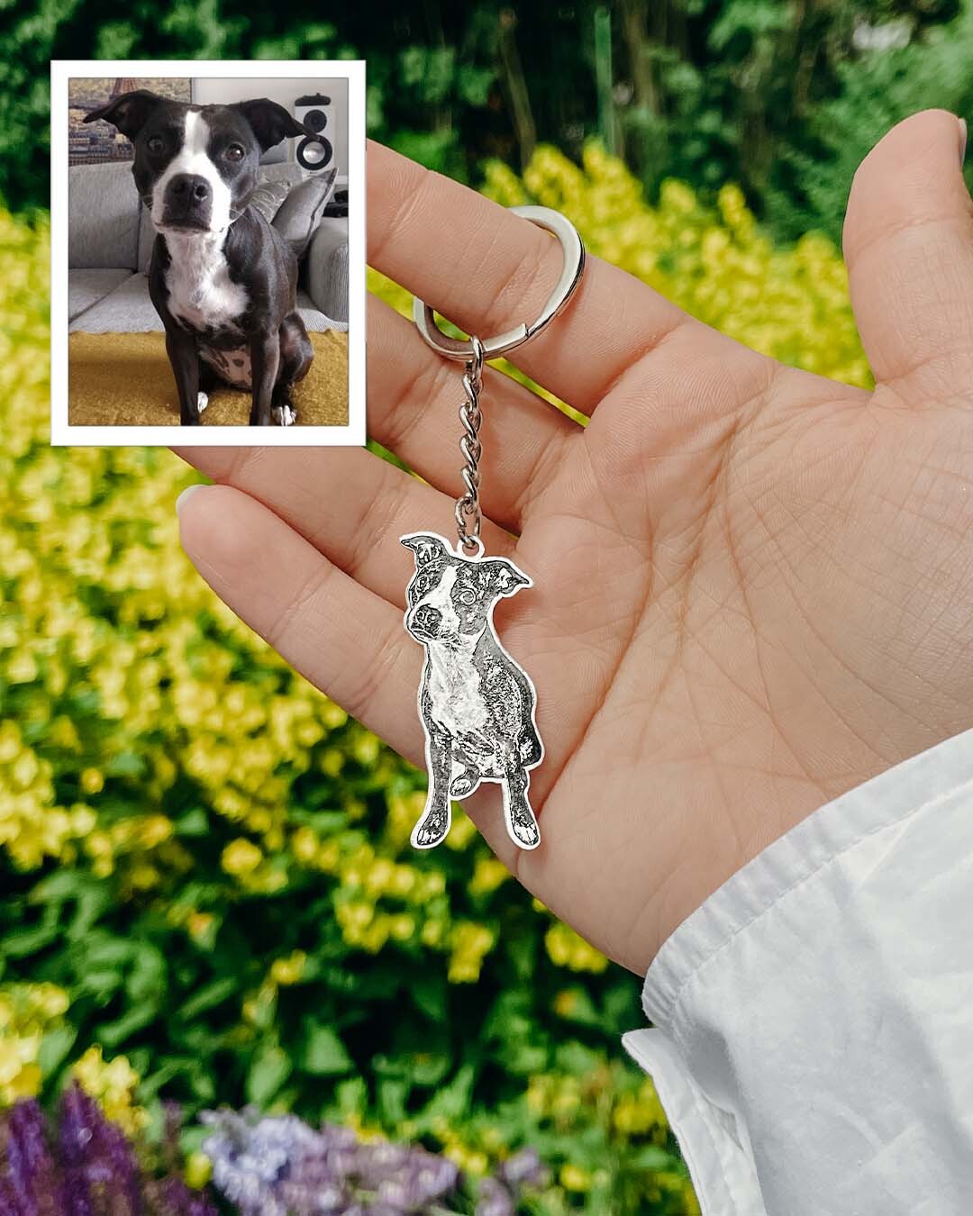 Металева підвіска, вирізана лазером по контуру вашої тваринки та гравіруванням.