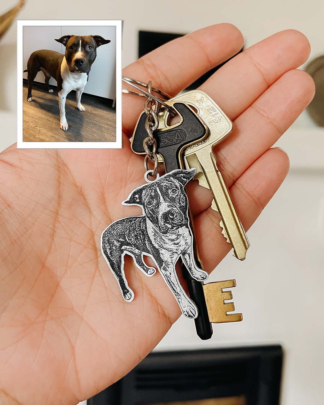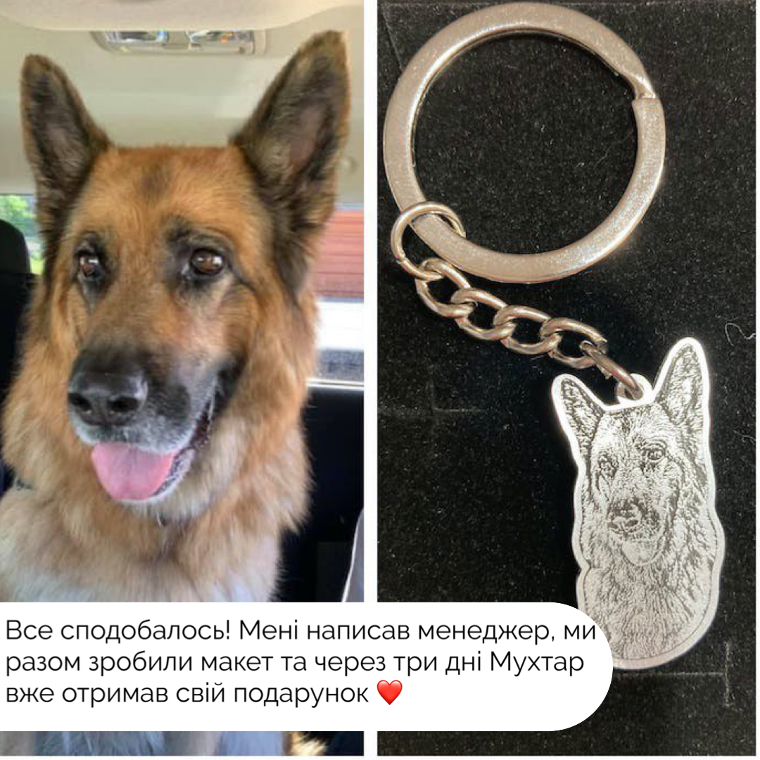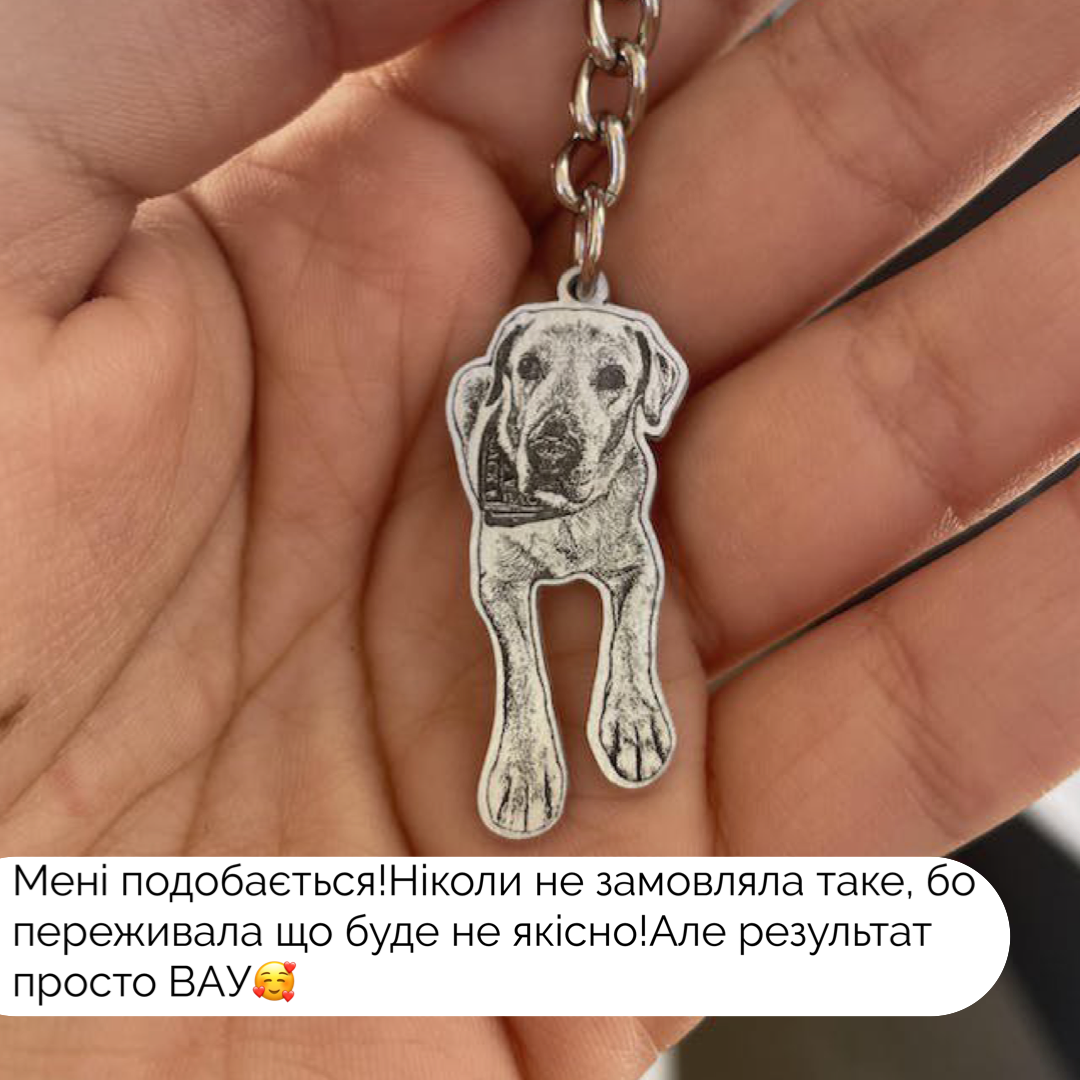 Металевий брелок, вирізаний лазером по контуру вашої тваринки та гравіруванням. Розробимо макет разом з Вами!