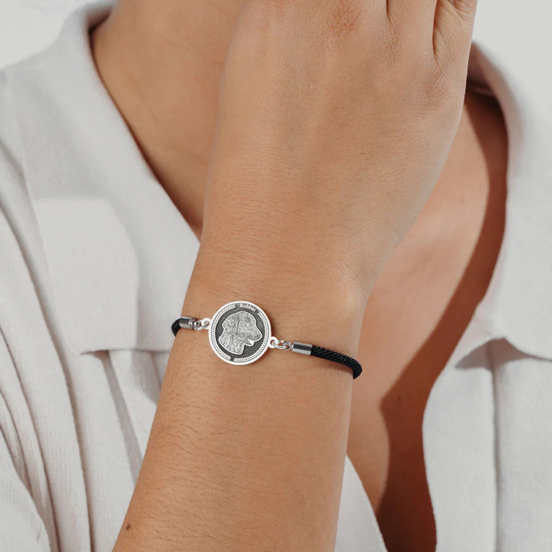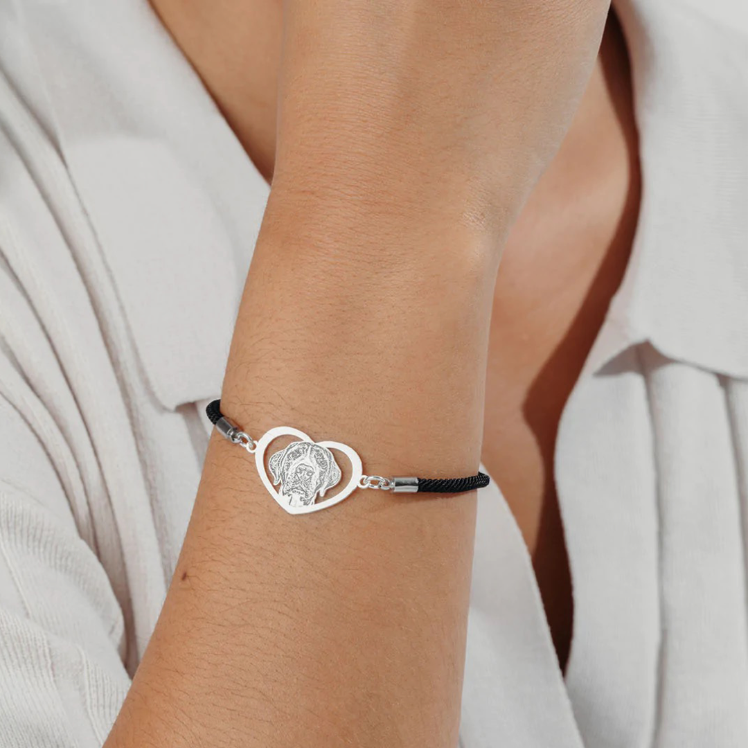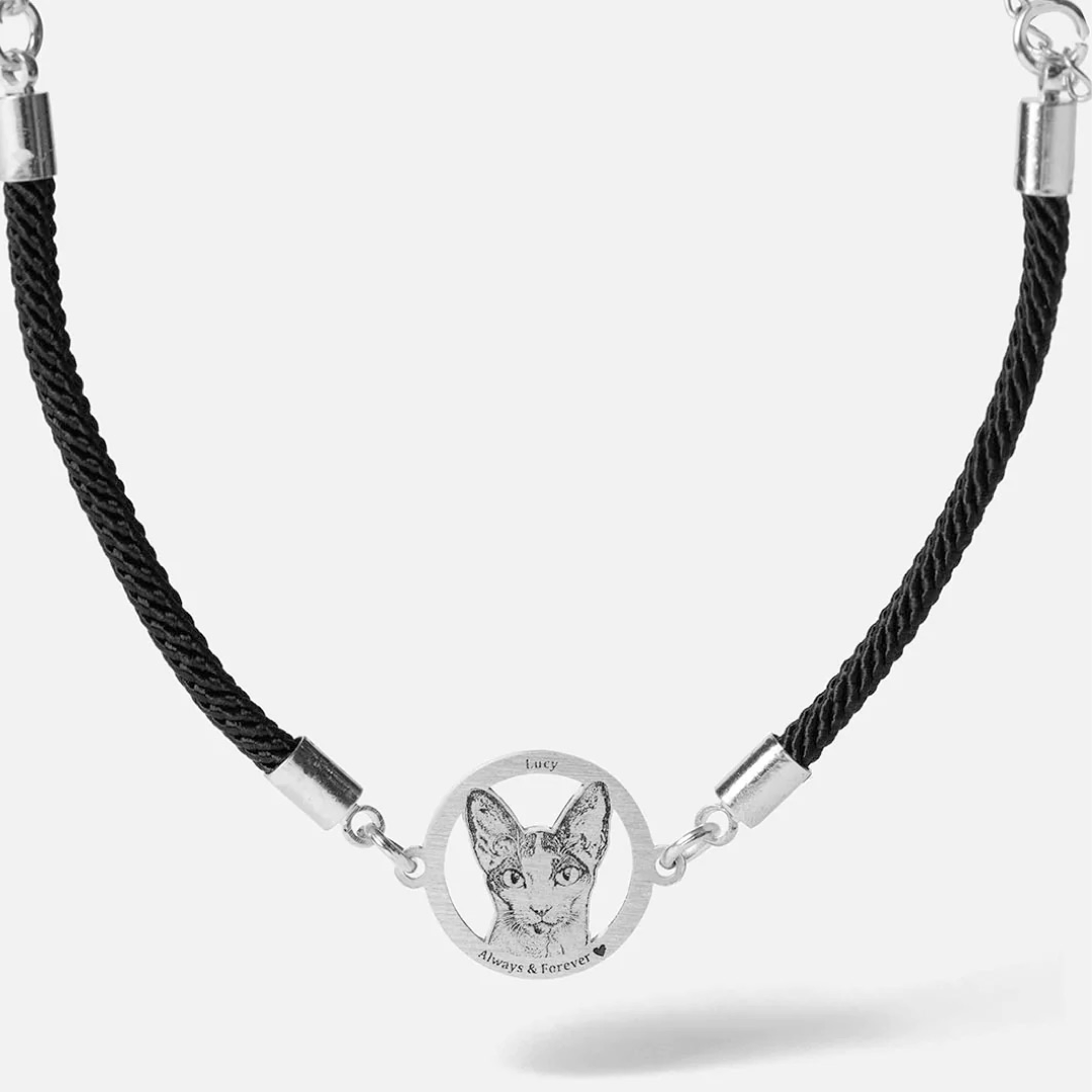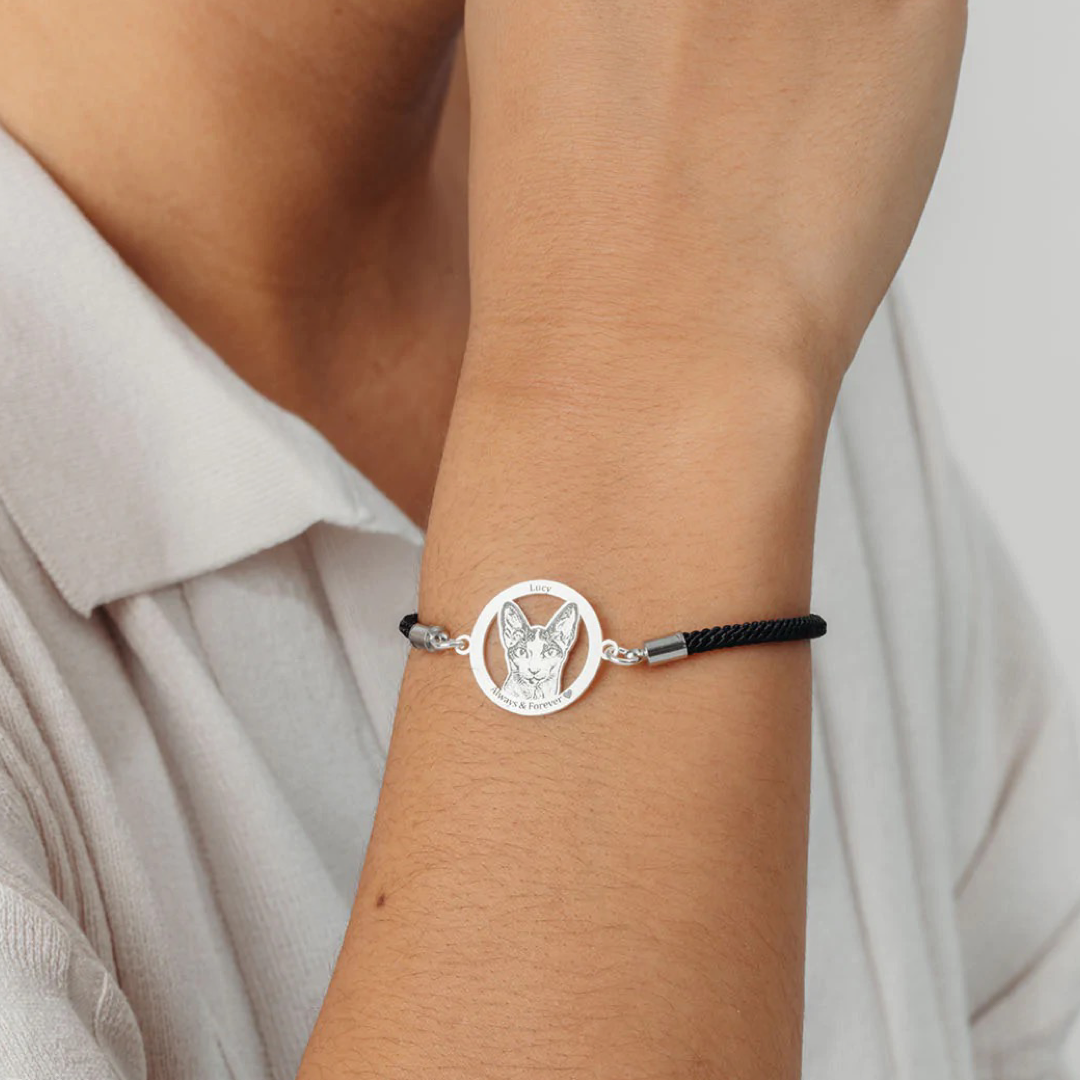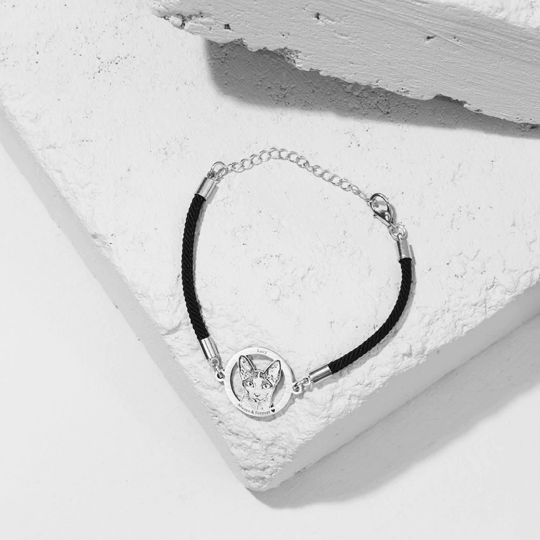 Металевий браслет, вирізаний лазером по контуру вашої тваринки та гравіруванням.